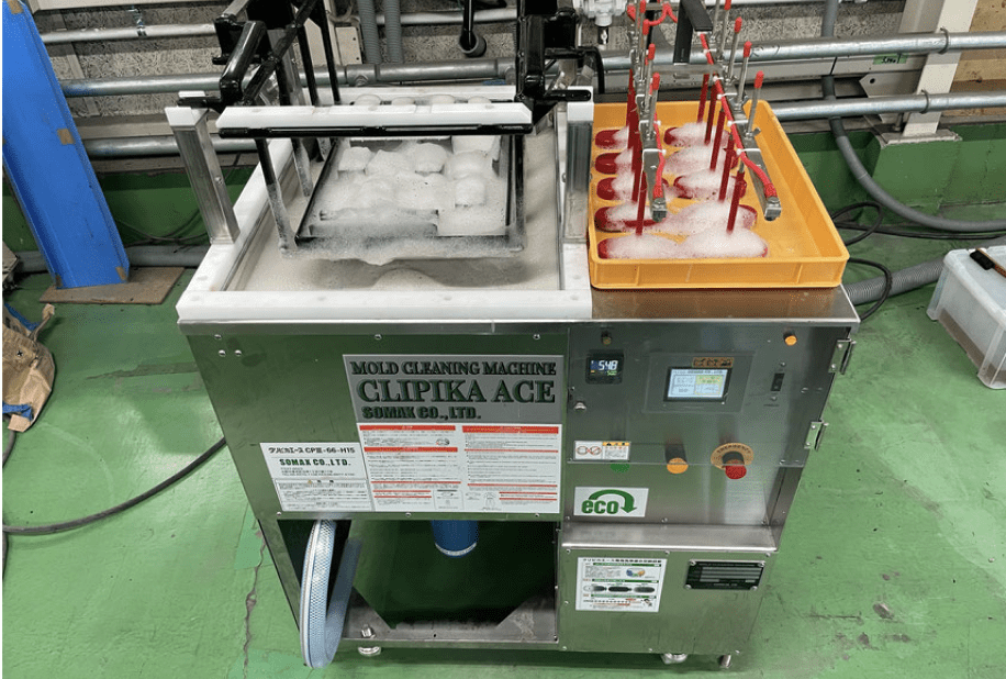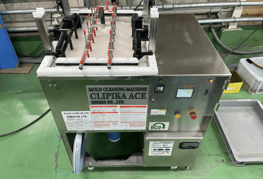 汚れを完璧に取り除き新型の鋼色に戻す金型専用洗浄機「クリピカエースⅢ」を導入しました。